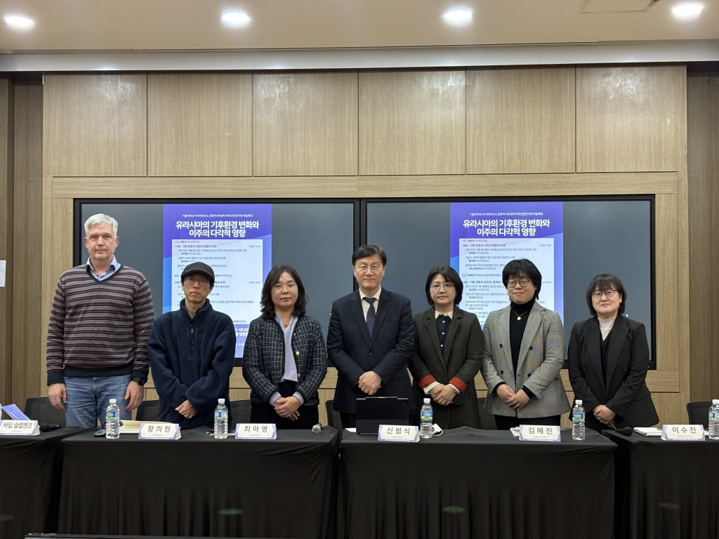 2025년 12월 23일서울대학교 아시아연구소 중앙아시아센터 이주·난민연구단은 2025년 12월 11일「유라시아의 기후환경 변화와 이주의 다각적 영향」을 주제로 학술회의를 개최했다. 본 행사는 유라시아 지역에서 가속화되고 있는 기후환경 변화가 사회적‧정치적‧경제적 영역에 어떠한 영향을 미치고 있으며, 이로 인해 어떠한 이주 동학이 형성되고 있는지를 다차원적으로 분석하고자 마련되었다. 연구자들은 기후 변화와 이주 간 상호작용을 다양한 사례와 방법론을 통해 조명하고, 누적된 연구 성과를 점검하며 향후 연구 방향을 모색했다. 학술회의는 신범식 교수가 사회를 맡아 진행되었다.