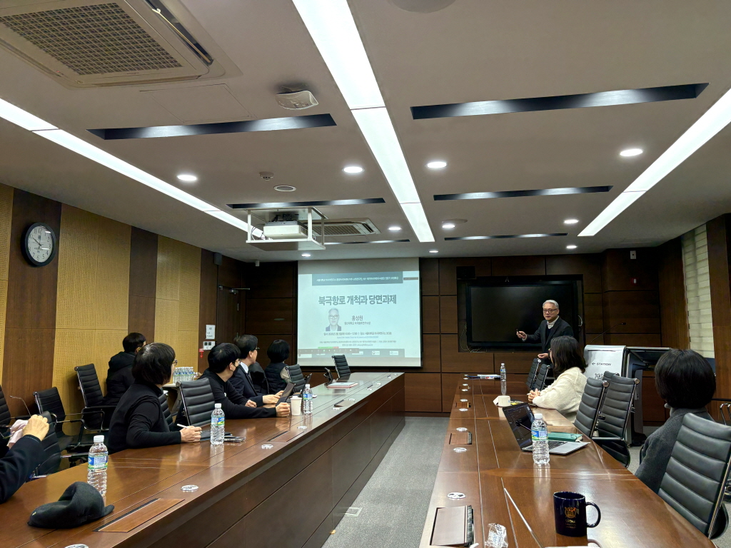강연 후 이어진 질의응답에서는 북극항로의 국제법적 지위, 러시아의 통제 강화가 국제 해운 질서에 미치는 영향, 그리고 한국 정부와 기업의 현실적인 대응 전략을 둘러싼 질문이 이어졌다. 홍 소장은 북극항로가 형식적으로는 국제 항로의 성격을 일부 지니고 있으나, 실제 운용에서는 러시아의 행정·법적 통제가 강하게 작동하고 있다고 설명했다. 그는 한국이 북극항로를 활용하거나 협력에 참여할 경우, 단순한 물류 논리를 넘어 러시아의 정책 구조와 제도적 환경을 정확히 이해하는 것이 필수적이라고 강조했다.